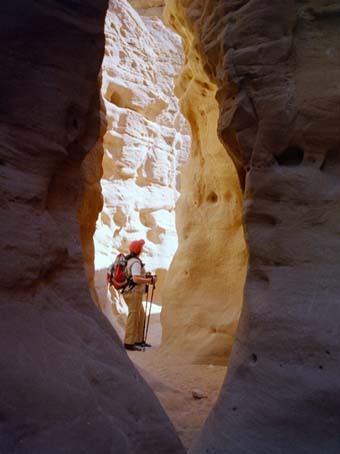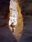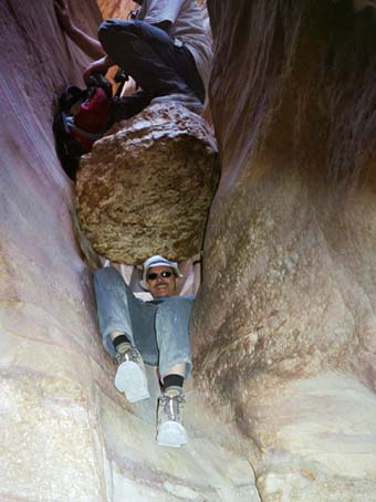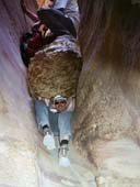 ins Canyon gefallener Findling erschwert den bereits engen Durchgang
