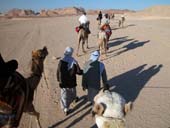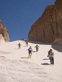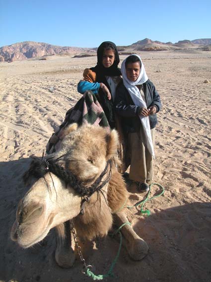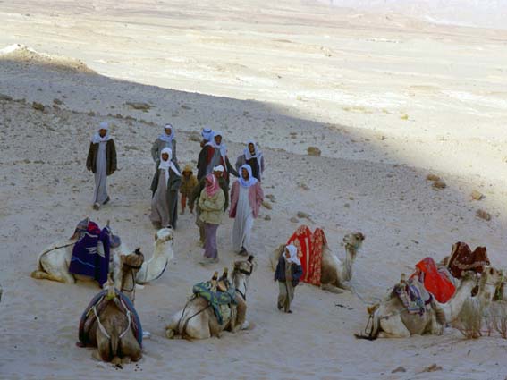 stiegen wir den Berg hinunter, wo die Beduinen bereits mit ihren Dromedaren auf