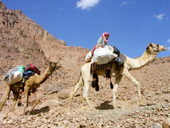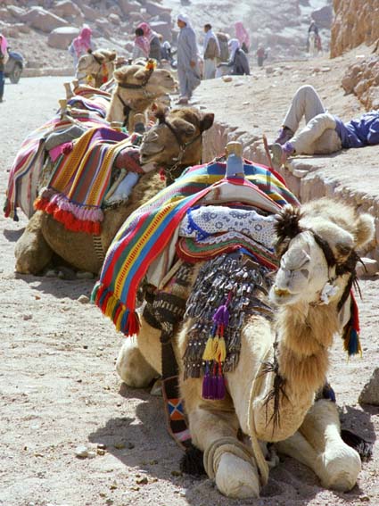 weniger Berggewohnte standen neben dem Kloster Dromedare für den Aufstieg